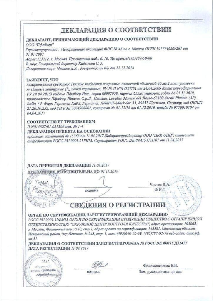 Показания препарата Релпакс