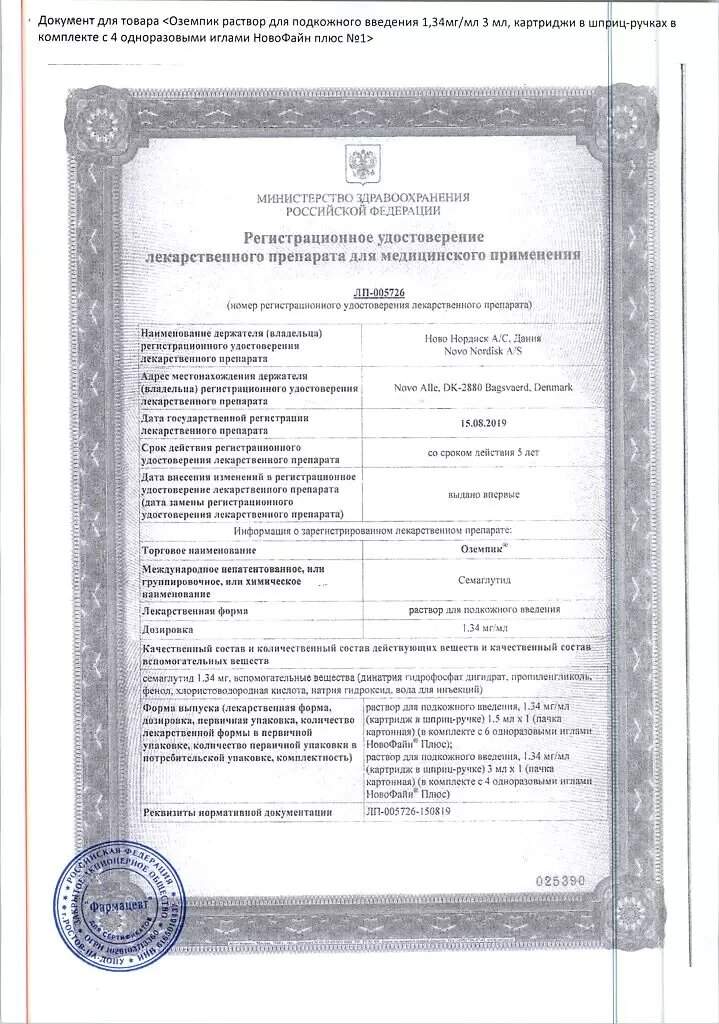 Сертификаты Оземпик