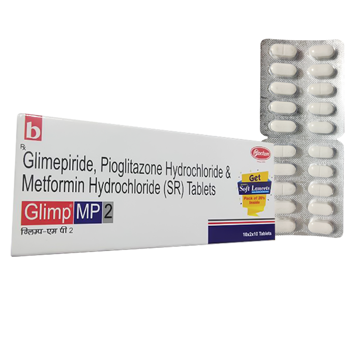 1 таблетка содержит глимепирида 2 мг, пиоглитазона гидрохлорида, эквивалентно пиоглитазона 15 мг, метформена гидрохлорида (замедленное высвобождение) 500 мг.