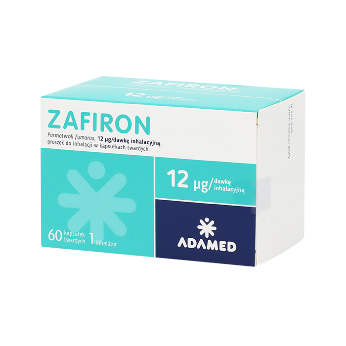 Зафирон - это бронходилататор. Он расслабляет гладкие мышцы бронхов, облегчая дыхание. Эффект наступает быстро в течение 1-3 минут, а эффект сохраняется в течение 12 часов после ингаляции. Каждая твердая капсула содержит 12 микрограммов дигидрата фумарата формотерола и предназначена для использования в ингаляторах.