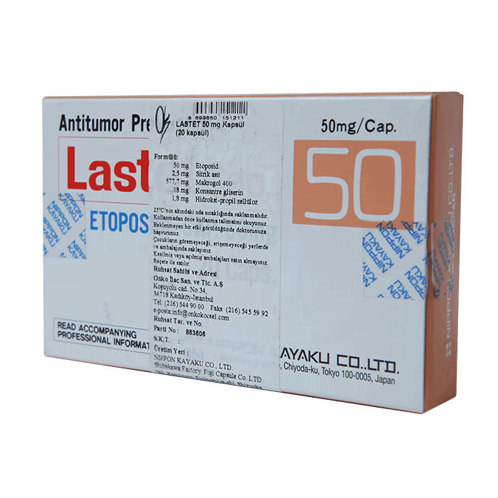 1 капсула Ластет содержит: активное вещество: этопозид 25 мг, 50 мг или 100 мг.