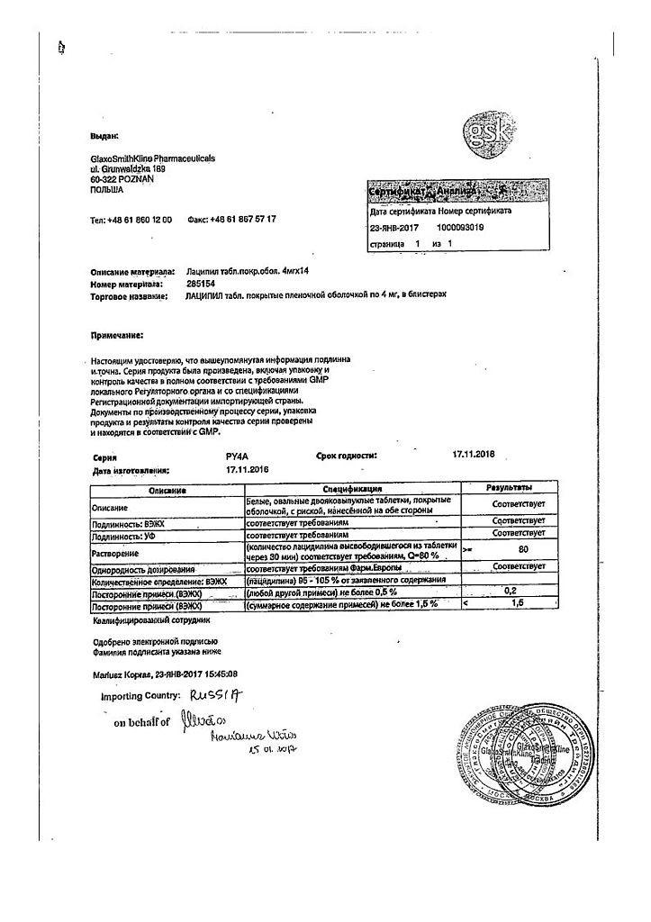 Лаципил следует принимать в одно и то же время дня, предпочтительно утром, независимо от приема пищи.